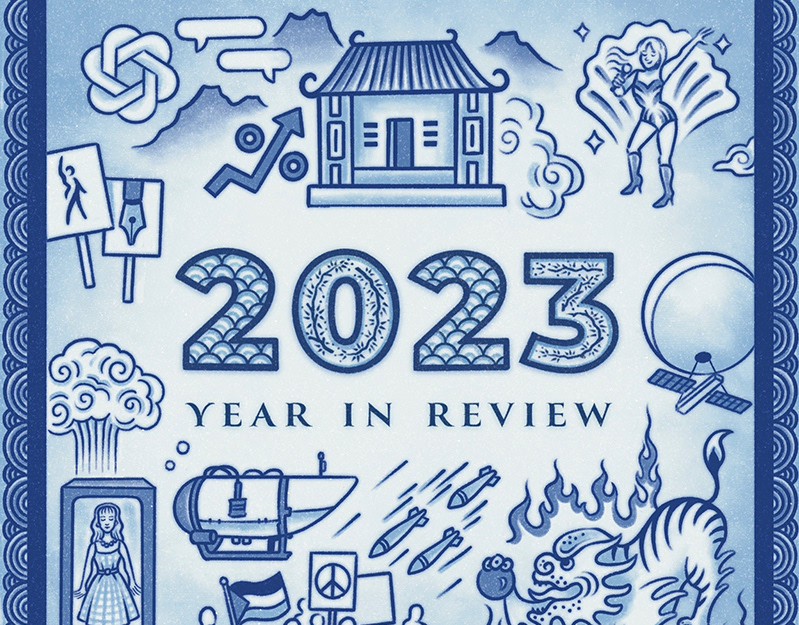 I’ve chosen to leave off personal moments for now and kept it to important social, political, and cultural events using the convention of a period in art history. This year I’ve chosen medieval illuminated manuscripts. In particular, I spent some time researching the illuminated manuscript "Très Riches Heures du Duc de Berry', which is an example of a 'book of hours'. This book and other canonical prayer books of the Middle Ages were illuminated with visuals for each calendar month and became a fitting starting point for this new annual tradition. Throughout my illustration, the rendering of environmental details and figures reference medieval architecture and stylistic conventions. In this way, a visual link between the current year and those of the past is created. While fresh in our collective memory, one day the event and memories of the passing year will be recorded to history books and archived in museums just as the past centuries have done.
