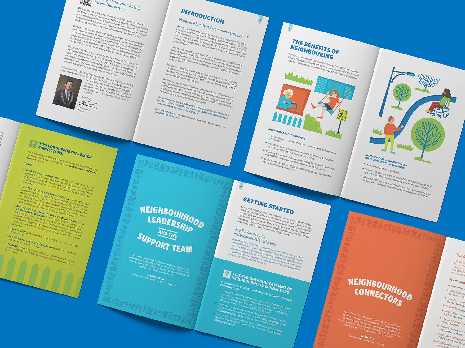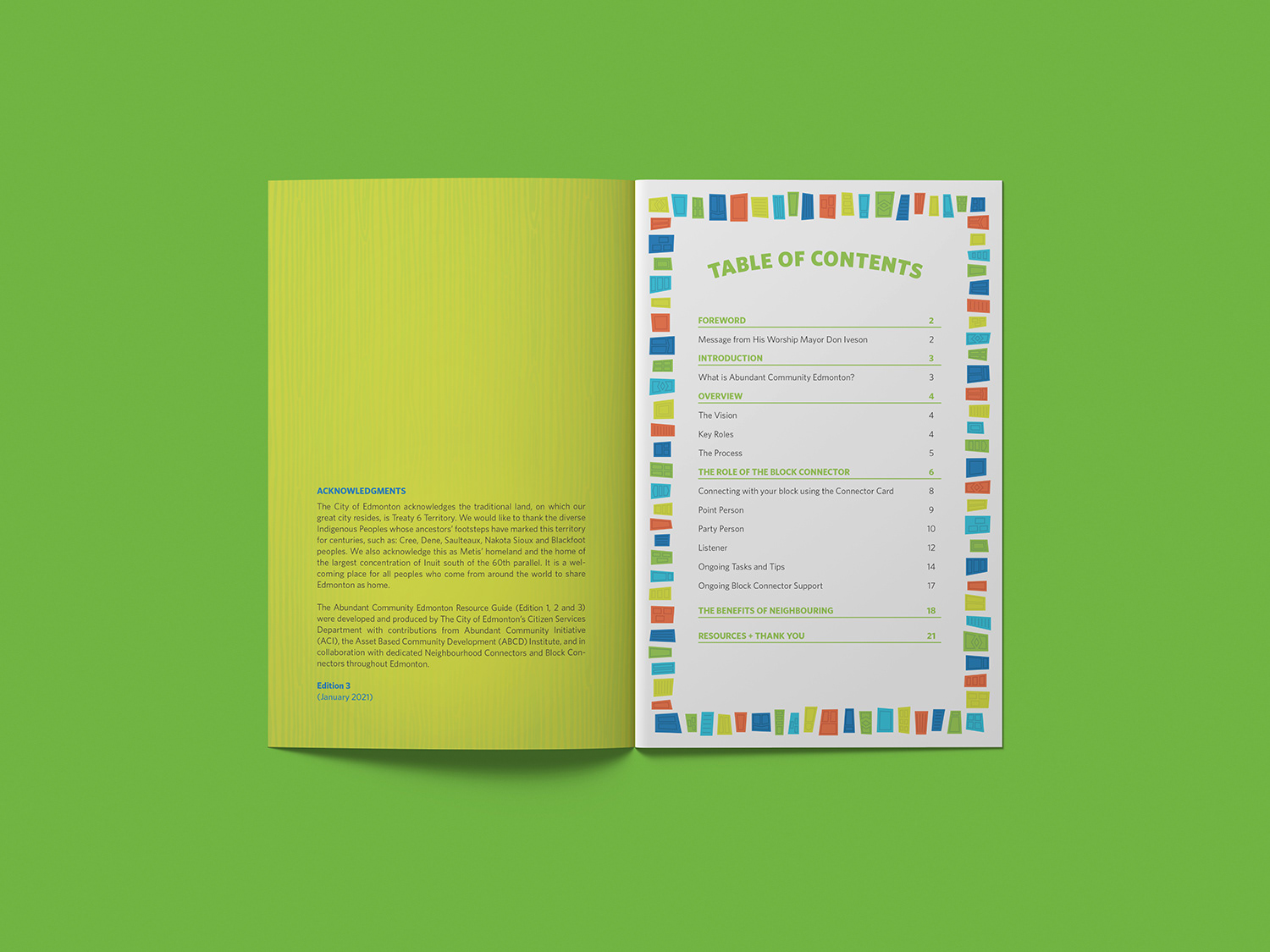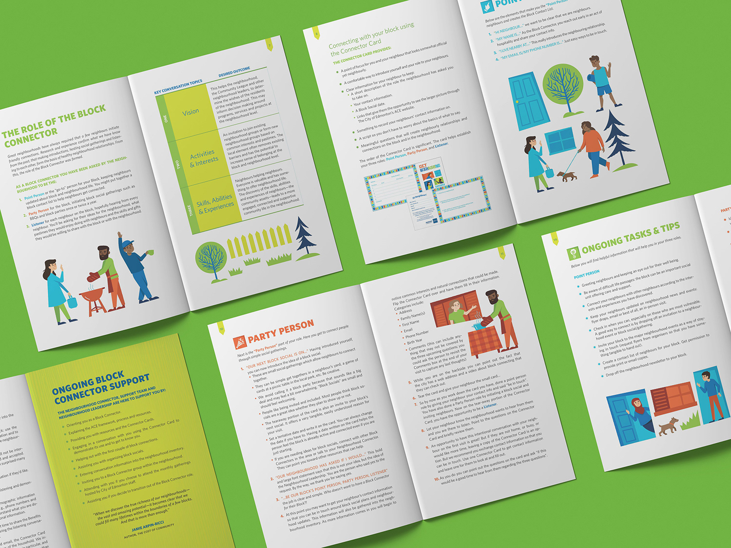 The illustration assets I developed were created to be modular and be easily assembled in a variety of ways to fit the many use cases of the campaign. Inspired by overhead views of neighbourhood blocks and the idea of a colourful community mosaic. I wanted to visualize the idea of reaching beyond the walls of your own home and connecting with your neighbours.