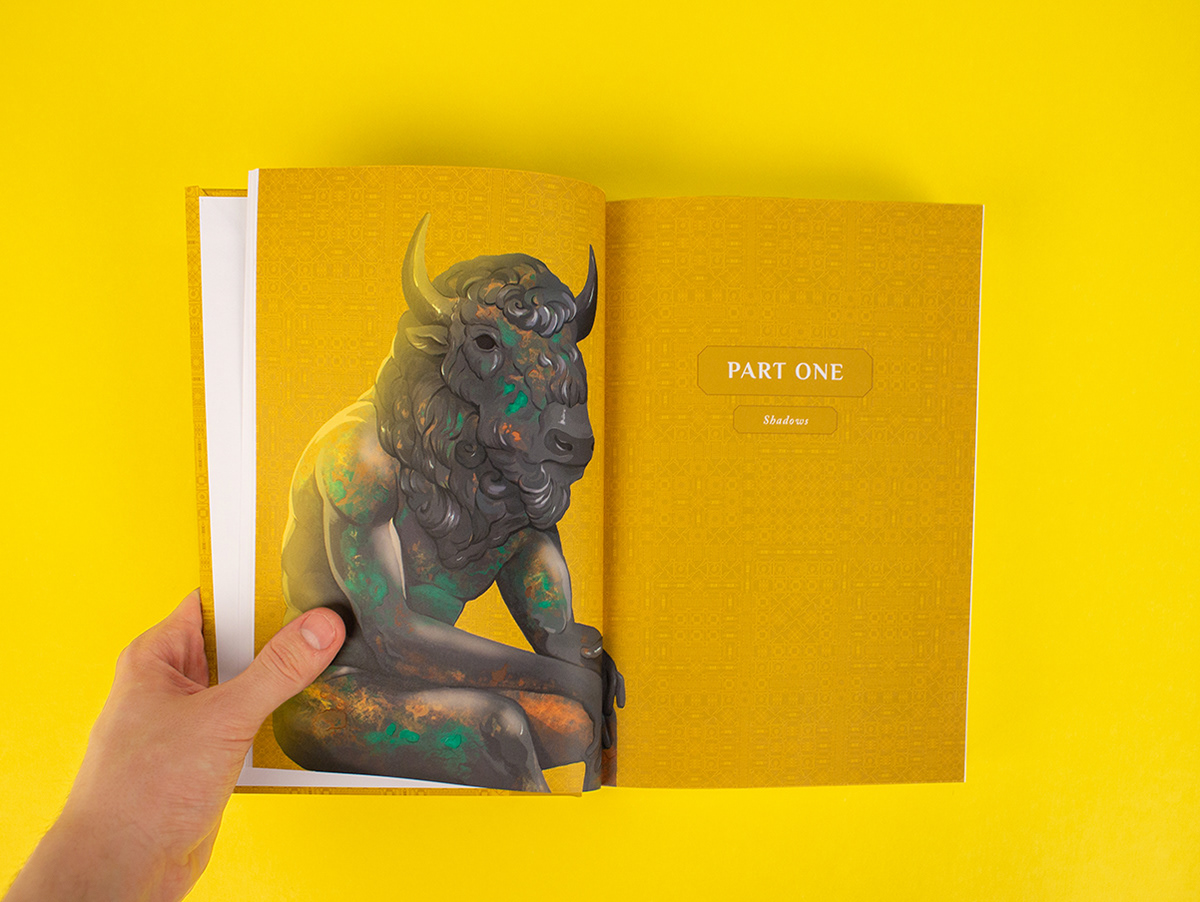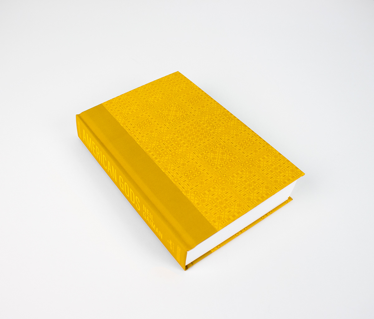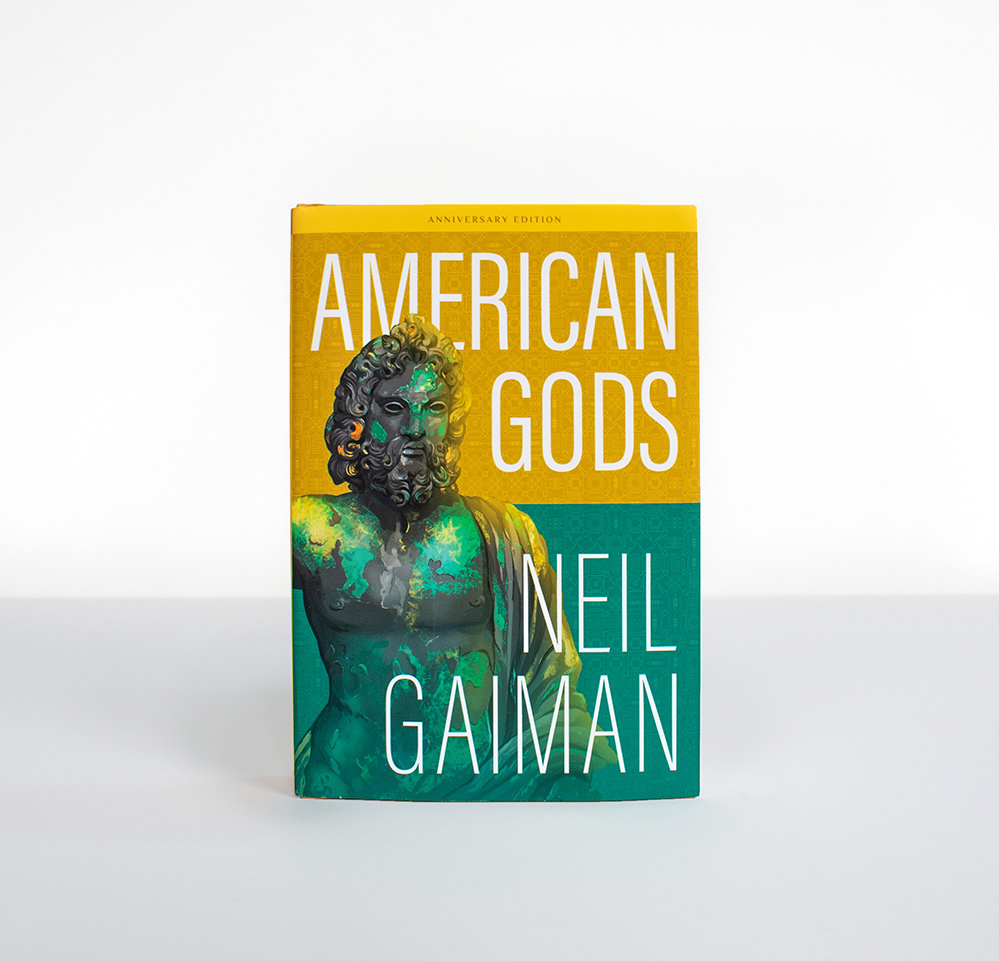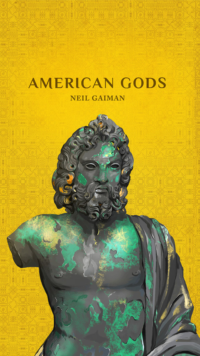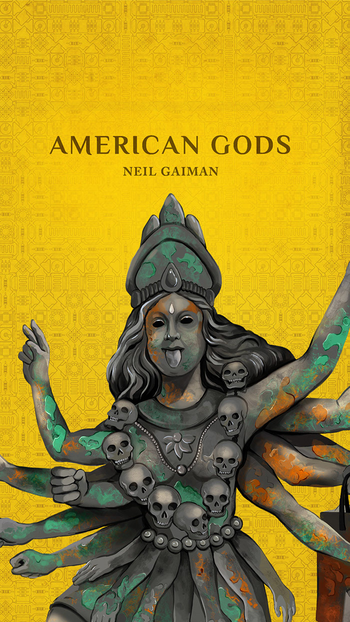 Book redesign of American Gods by Neil Gaiman. The visual style was designed to resemble religious ornament while being composed of circuit board symbols, echoing the novel's theme of the old traditions versus modern technology.