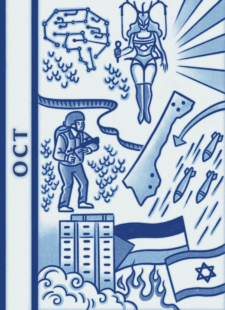 (7th) Hamas launches an air and ground attack on Israel from Gaza.