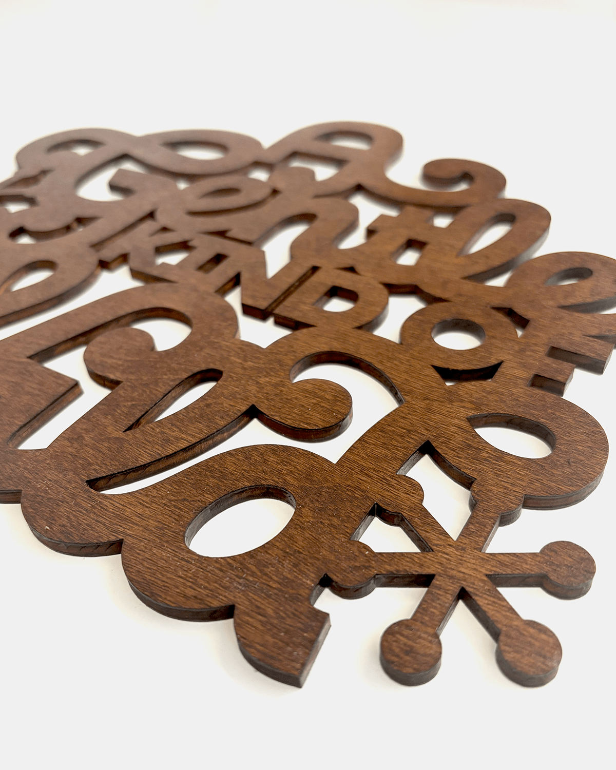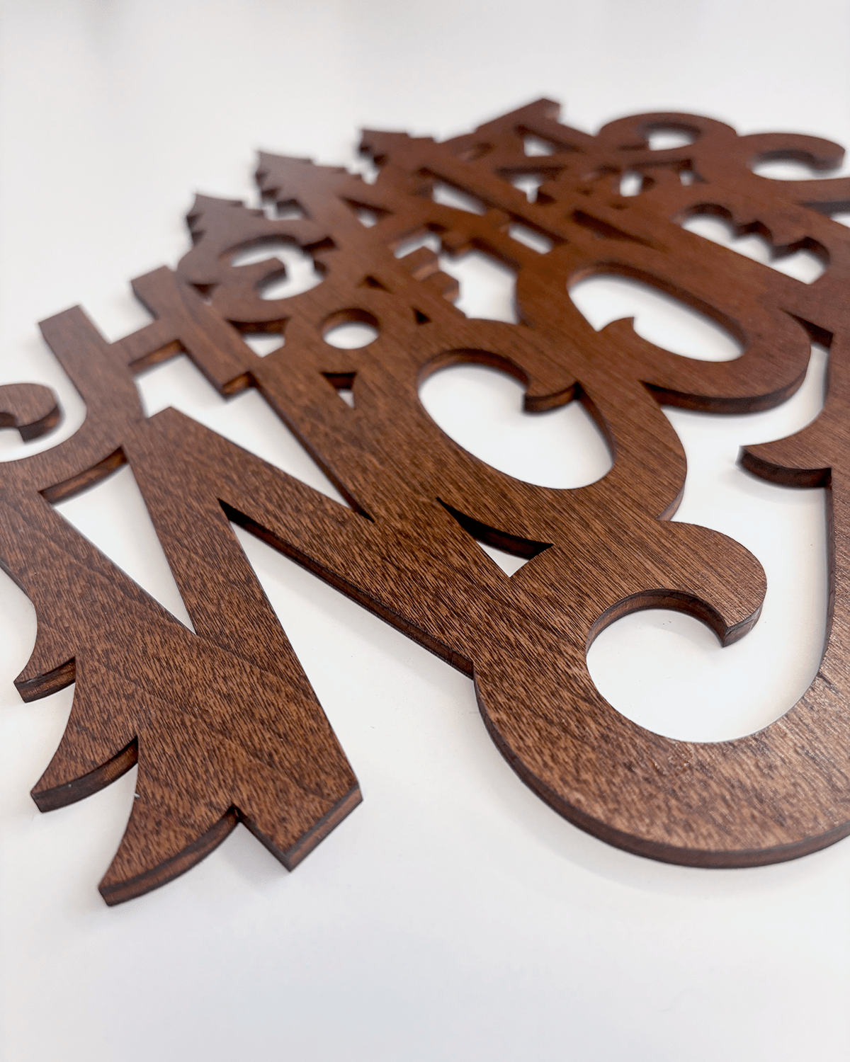Vector lettering that has been lasercut out of wood, stained and treated. Can be used as wall art or hung as a Christmas ornament. Use my contact form for orders or custom requests.