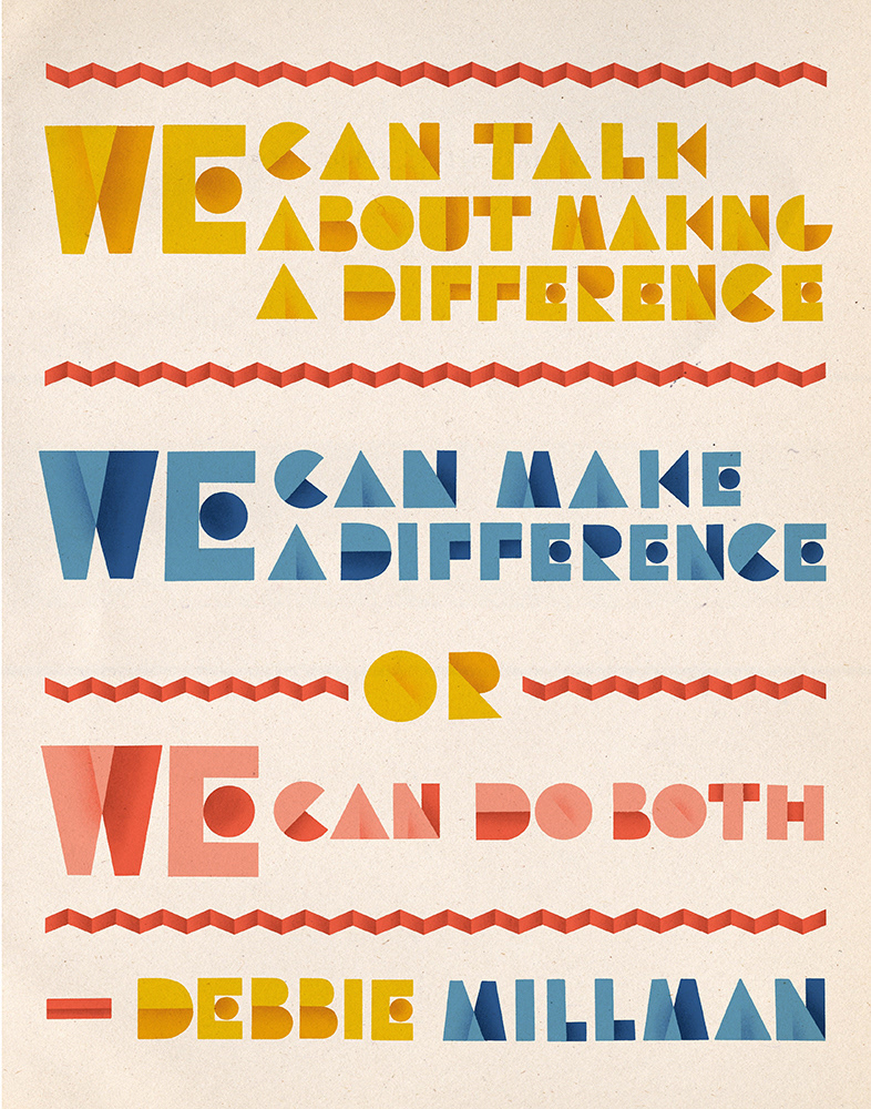 Famous sendoff of podcaster and design educator, Debbie Millman. This quote doesn’t diminish the power of discussion and talking through a problem, but also maintains the importance of acting on those conversations to make real change.