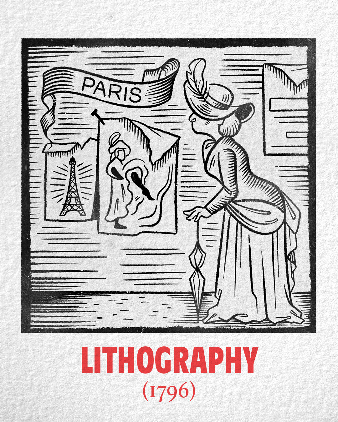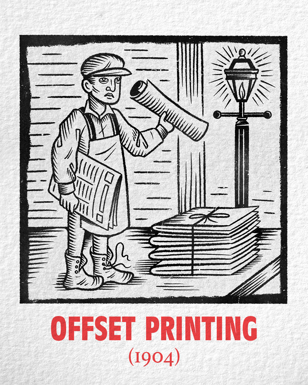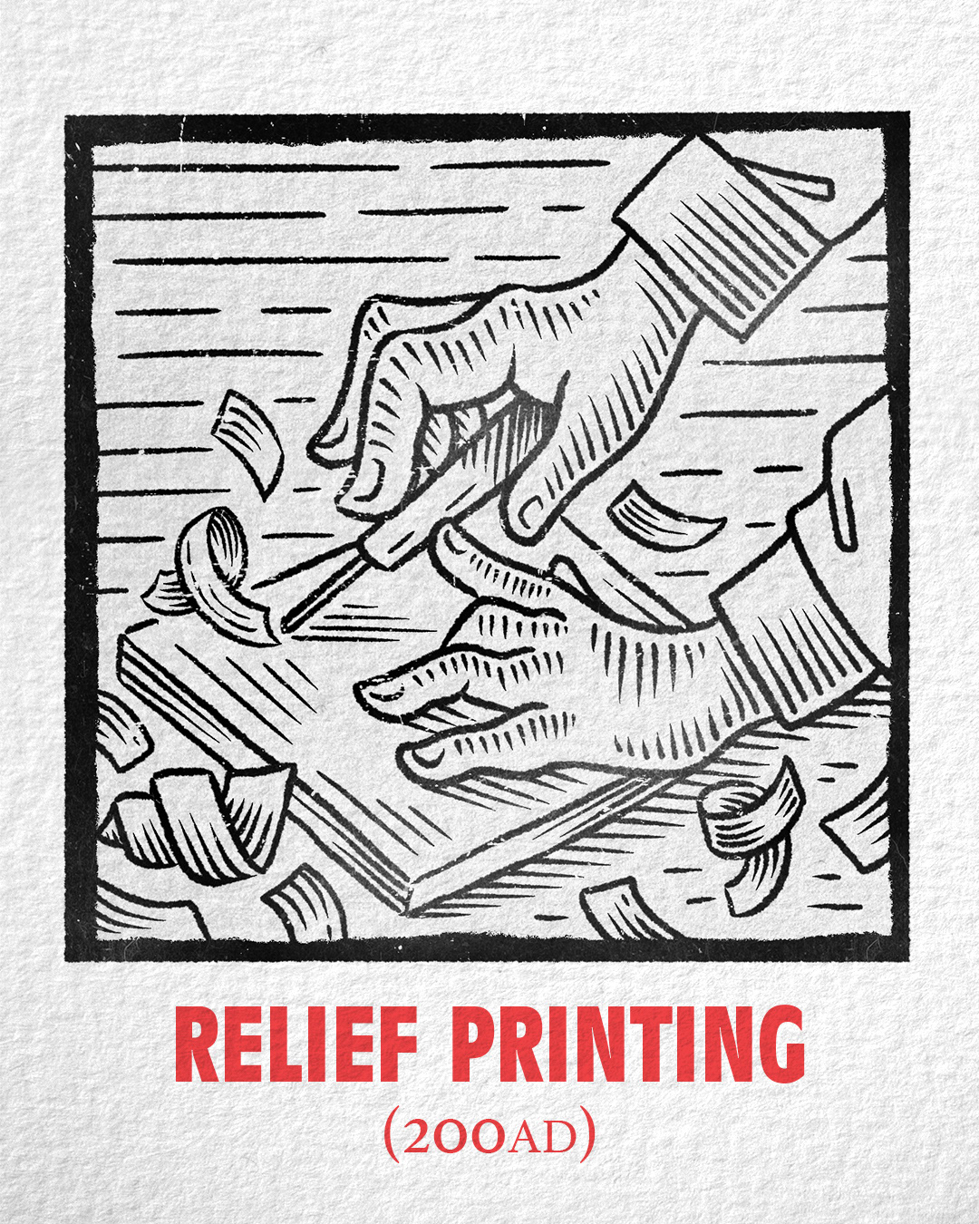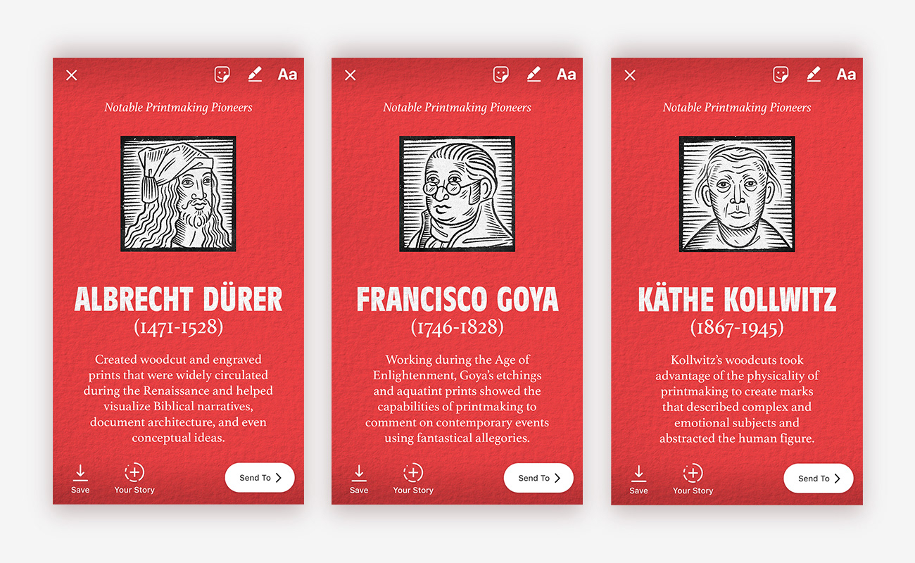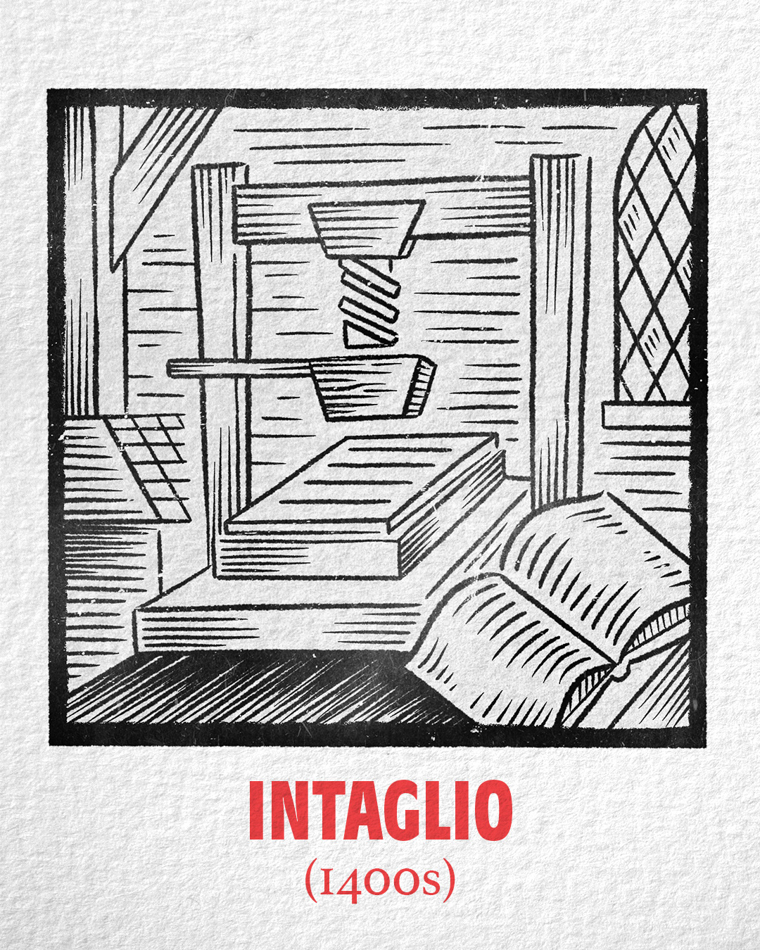 Commissioned by the Society of Northern Alberta Print-artists (SNAP) for their SNAPline publication. I contributed the written article, spot illustrations, and initial layout design (shown here). In addition to the research I undertook for the written assignment, I also studied Renaissance woodcuts to inform the style of the illustrations. The rectangular frames and line work resemble the carved blocks used in relief printing from that period and provide a historical reference point fitting for the timeline narrative of the piece.