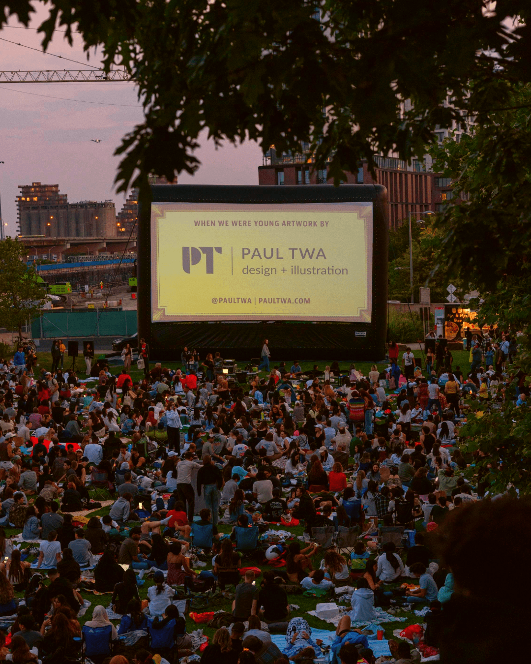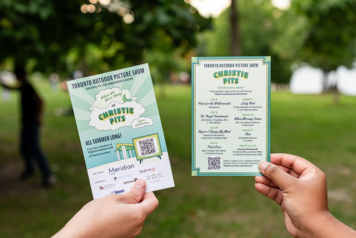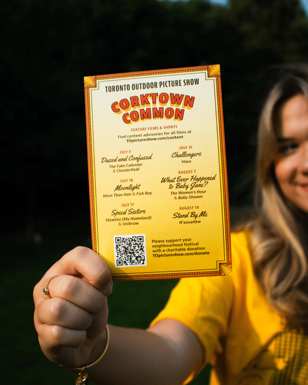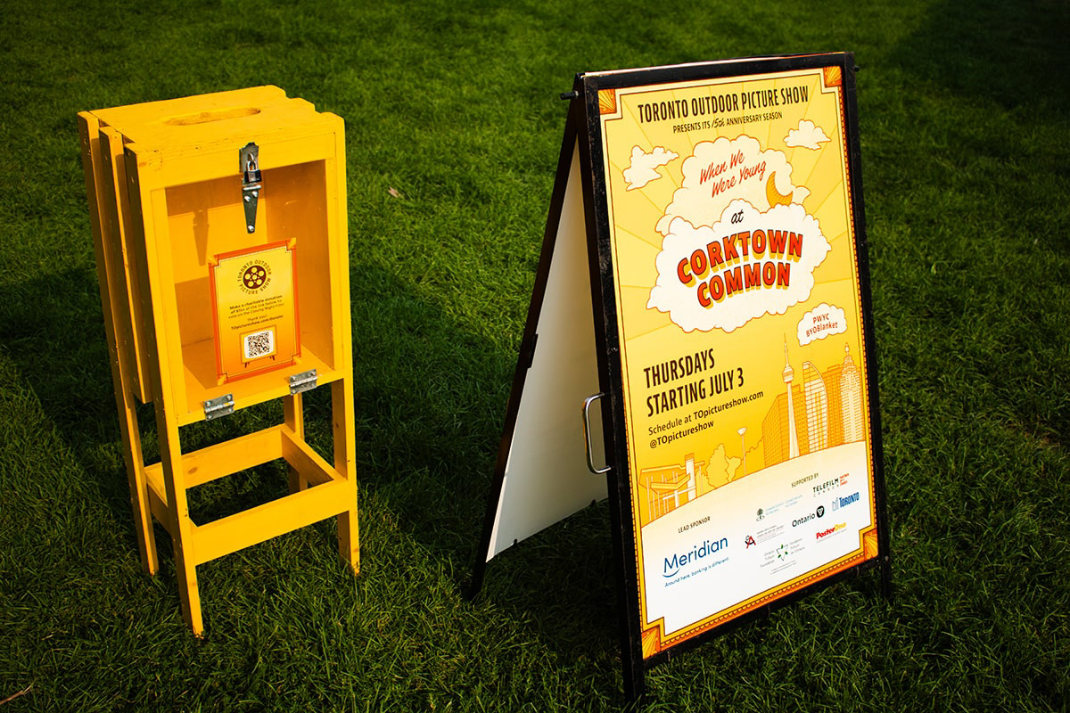I designed dozens of signs displaying programming details, activities, concessions, and merchandise for sale at the screenings. Postcards and staff/volunteer badges were also created. During the pre-show, hundreds of digital screens were developed, consistent with the colourway of the park.