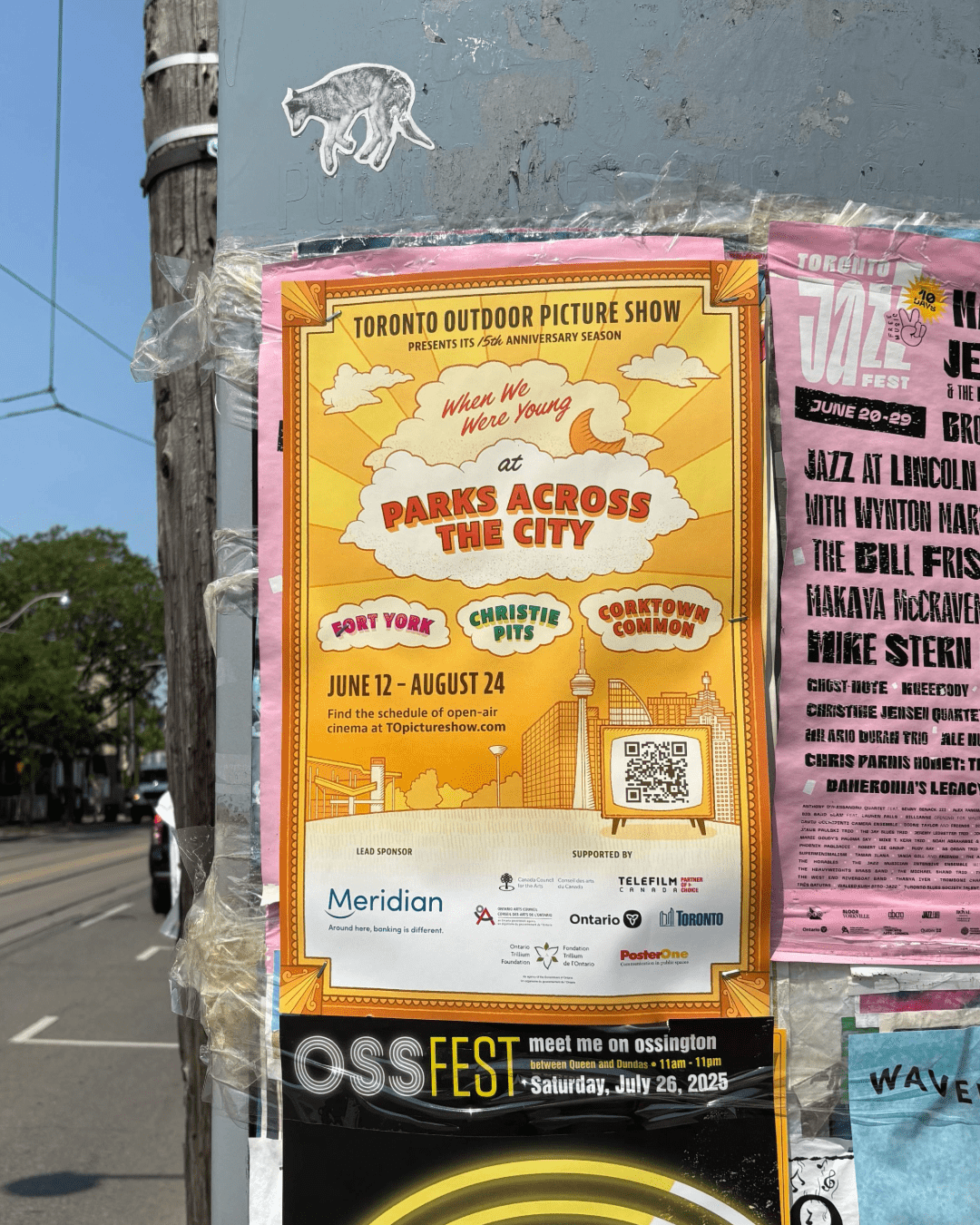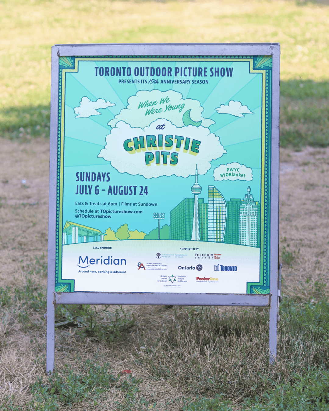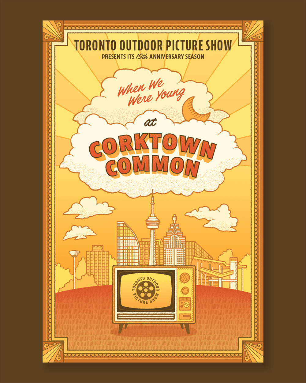 Three colourways were created to differentiate the three parks where TOPS screenings take place: Corktown Common, Christie Pits, and Fort York, each poster features a unique landmark from the parks added to the Toronto Skyline.